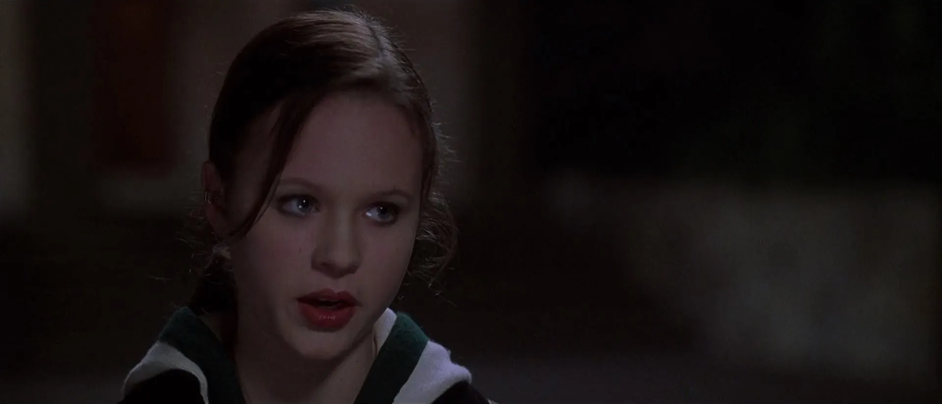 Starring: Kevin Spacey as Lester Burnham, Annette Bening as Carolyn Burnham, Thora Birch as Jane Burnham, Wes Bentley as Ricky Fitts, Mena Suvari as Angela Hayes, Chris Cooper as Colonel Frank Fitts, Allison Janney as Barbara Fitts, Peter Gallagher as Buddy Kane, Scott Bakula as Jim Olmeyer, Sam Robards as Jim Berkley, Barry Del Sherman as Brad Dupree, John Cho as Sale House Man #1, Hal Fort Atkinson as Sale House Man #2, Kent Faulcon as Sale House Man #3, Ara Celi as Sale House Woman #1, Sue Casey as Sale House Woman #2, Brenda Wehle as Sale House Woman #3, Lisa Cloud as Sale House Woman #4, Amber Smith as Christy Kane, Joel McCrary as Catering Boss, Marissa Jaret Winokur as Janine, Dennis Anderson as Mr. Smiley's Manager, Matthew Kimbrough as Firing Range Attendant, Erin Cathryn Strubbe as Young Jane, Alison Faulk as Spartanette #1, Krista Goodsitt as Spartanette #2, Lily Houtkin as Spartanette #3, Carolina Lancaster as Spartanette #4, Mona Leah as Spartanette #5, Chekesha Van Putten as Spartanette #6, Emily Zachary as Spartanette #7, Nancy Anderson as Spartanette #8, Reshma Gajjar as Spartanette #9, Stephanie Rizzo as Spartanette #10, Heather Joy Sher as Playground Girl #1, Chelsea Hertford as Playground Girl #2, Elaine Corral Kendall as Newscaster (uncredited), David C. Fisher as Wedding Guest (uncredited), Tom Miller as Advertising Executive (uncredited), Bruce Cohen as Bartender (uncredited)